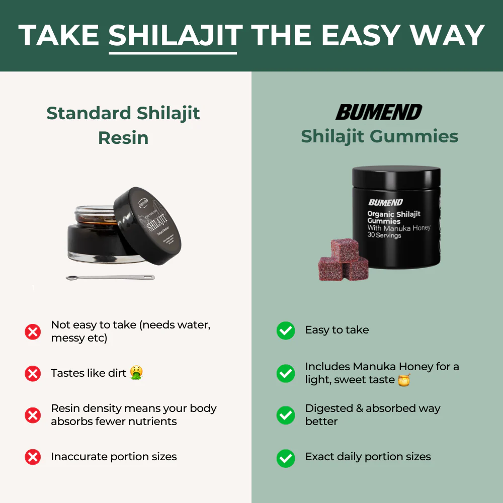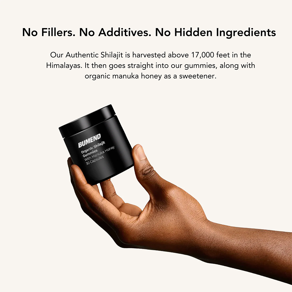 Bumend's products contain ingredients like Shilajit, Tongkat Ali, Ashwagandha, and B vitamins, which are known to: